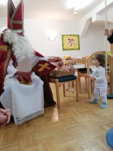 Dann begrüßen wir gemeinsam den Hl. Nikolaus, der für jedes Kind eine Kleinigkeit mitbringt.